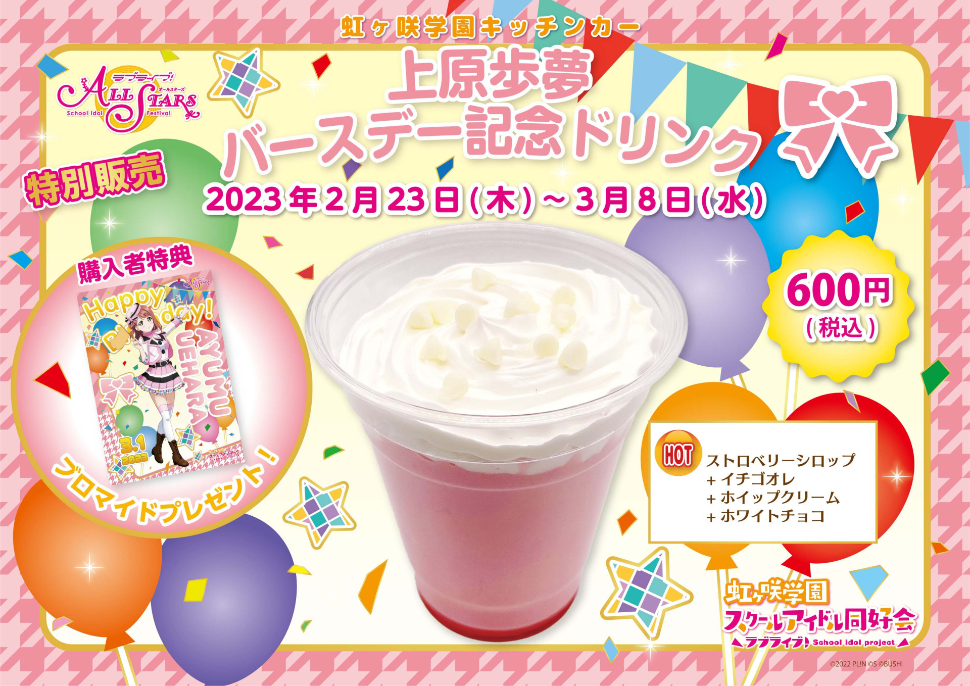 高咲 侑、上原 歩夢、中須 かすみ、桜坂 しずく、朝香 果林、宮下 愛、近江 彼方、優木 せつ菜、エマ・ヴェルデ、天王寺 璃奈、三船 栞子、ミア・テイラー、鐘 嵐珠をメインにデザインしました。