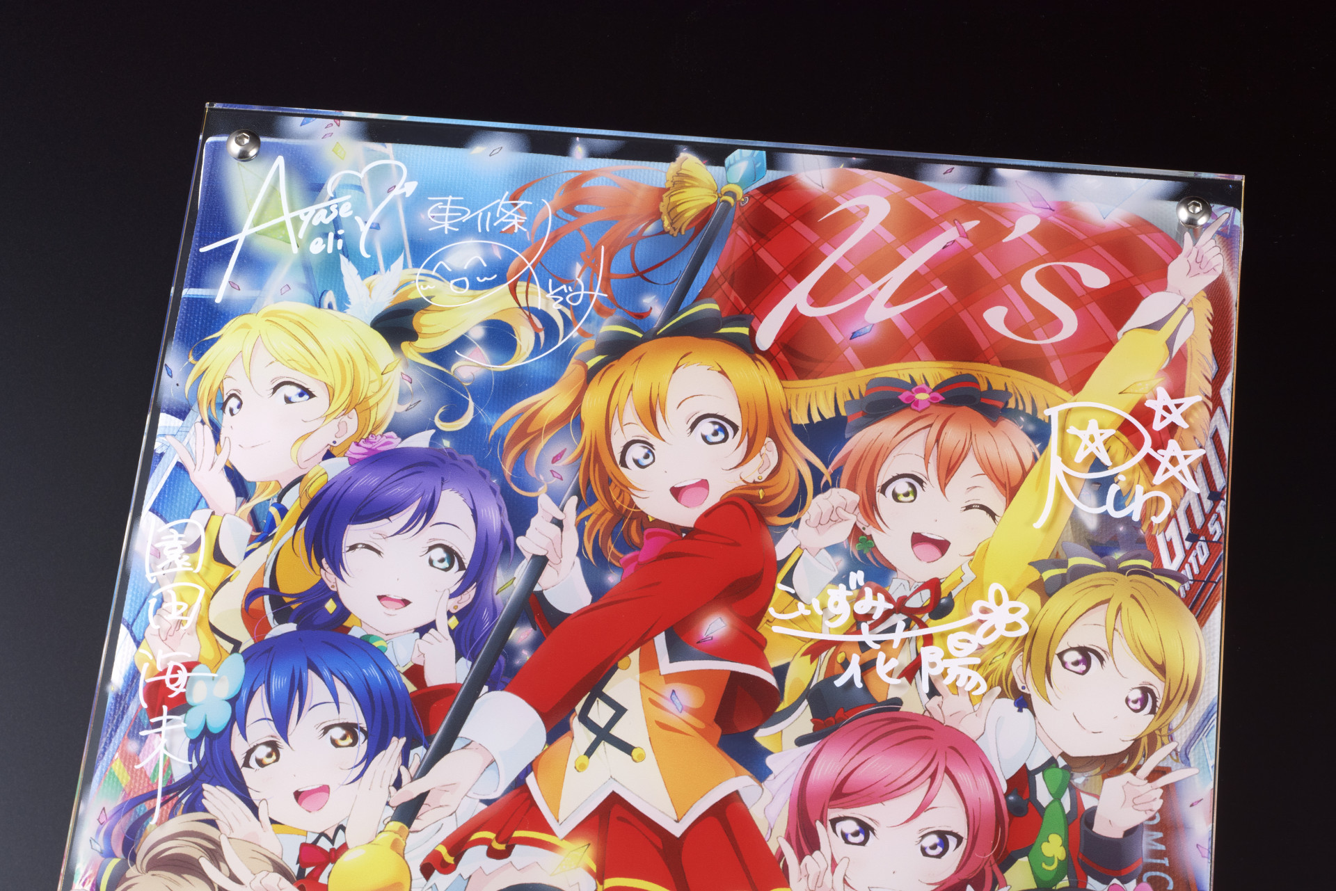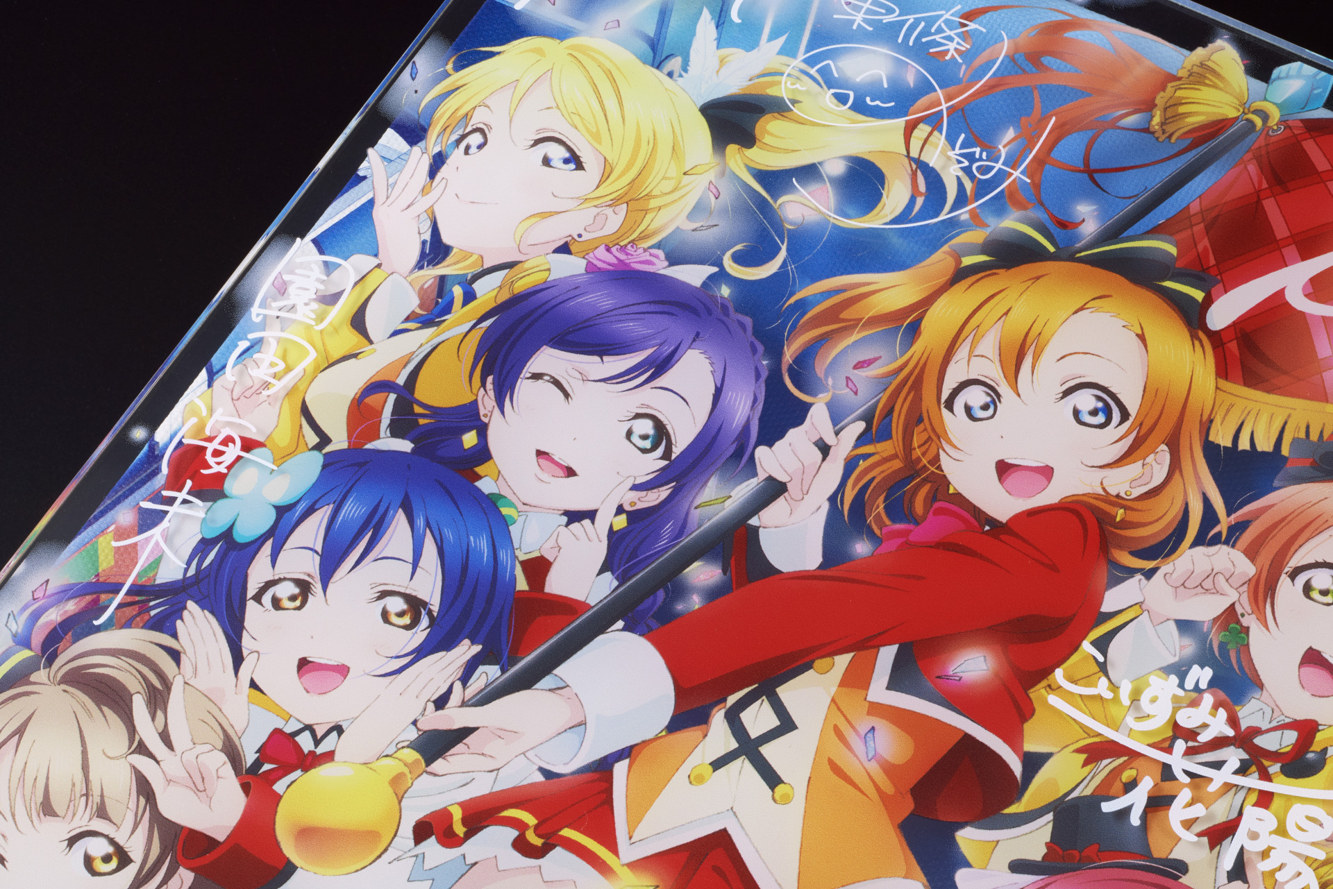 背景、メンバーイラスト、サインをそれぞれ異なるレイヤーで印刷した、立体的に鑑賞可能なアイテムです。