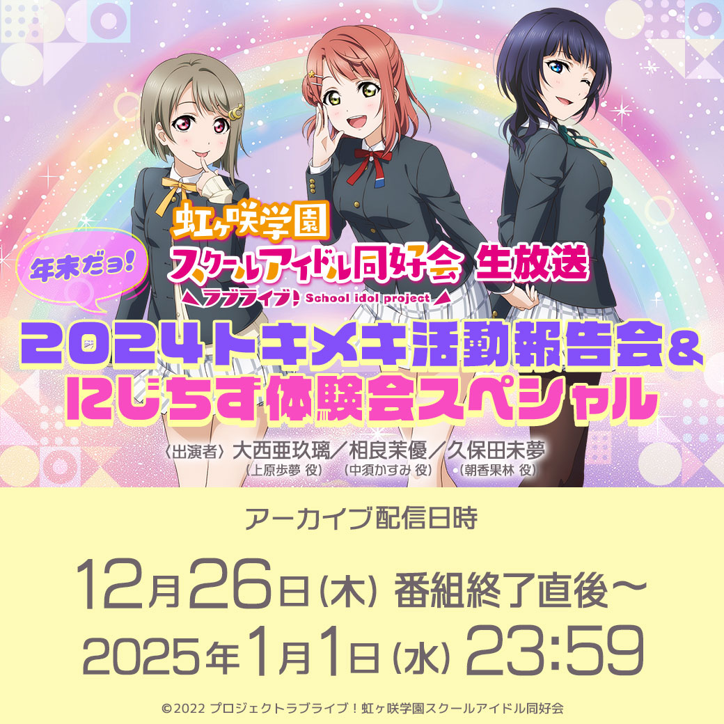 虹ヶ咲学園スクールアイドル同好会より3人のメンバーが出演する生放送番組のお知らせです!