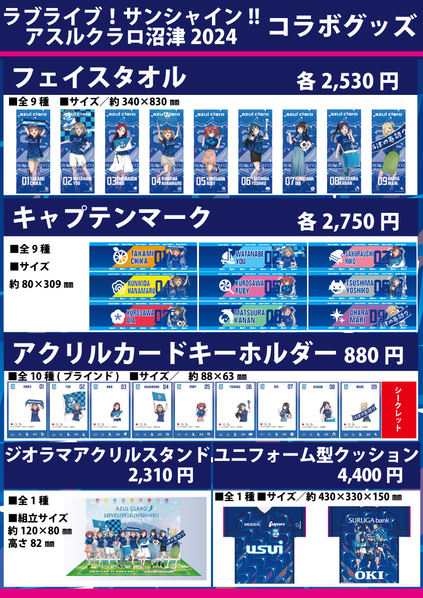 ■2024アスルクラロ沼津 3rdユニフォーム ラブライブ!サンシャイン!!エディション(FP/GK)