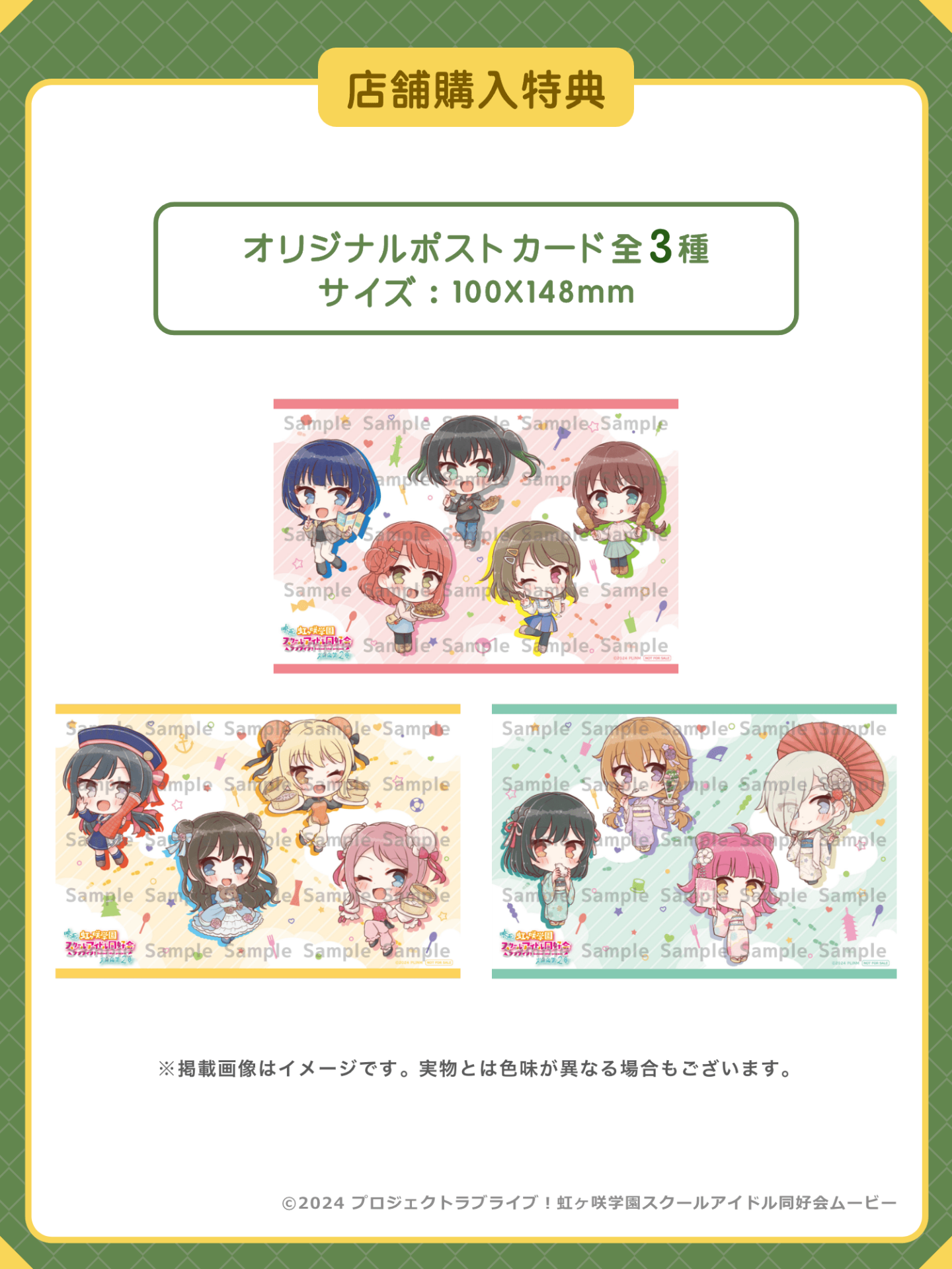 ラブライブ!シリーズ PremiumShop京都出張店にて、税込み3,300円ご購入ごとにオリジナルポストカードをランダムで1枚差し上げます。