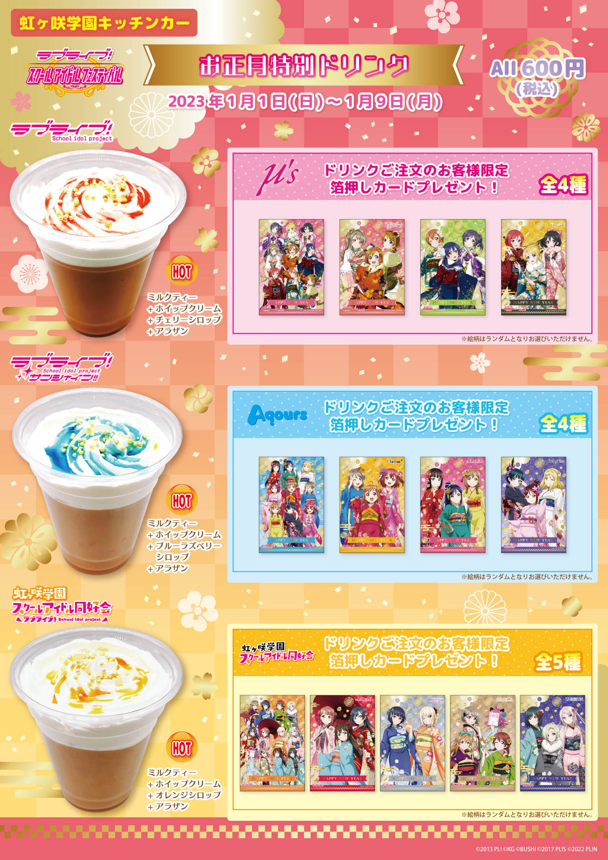 「虹ヶ咲学園キッチンカー」にて、この度お正月特別ドリンクの発売が決定しました!