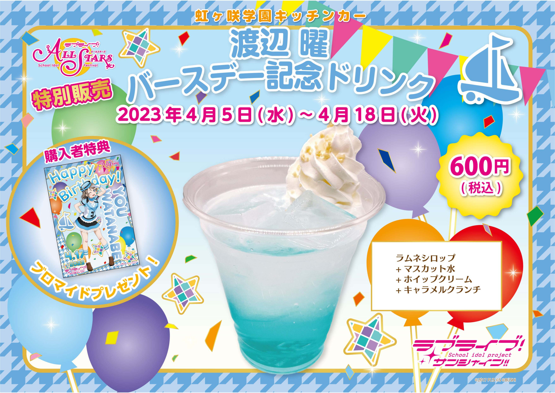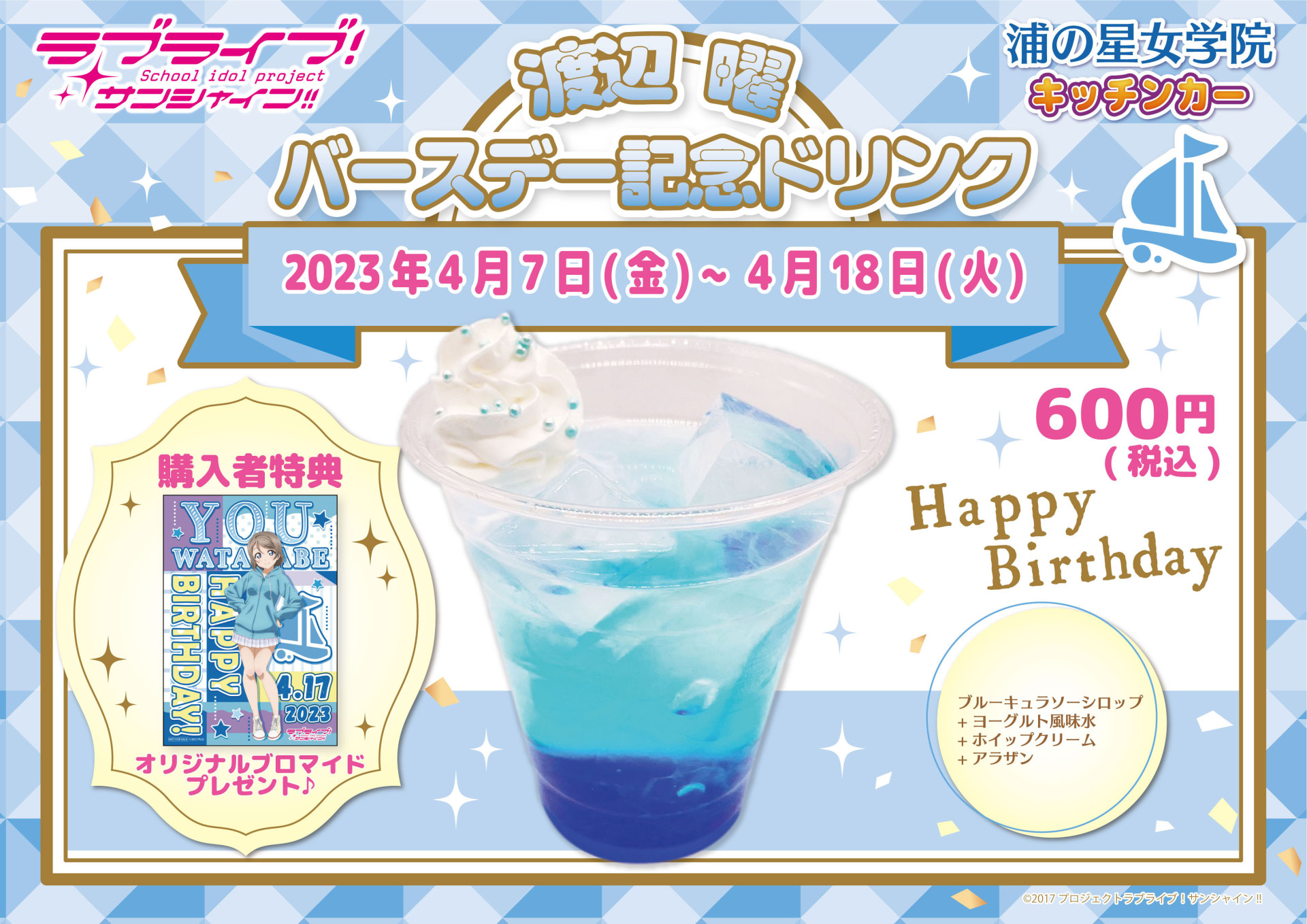 浦の星女学院キッチンカーよりバースデー記念ドリンク販売のお知らせ
