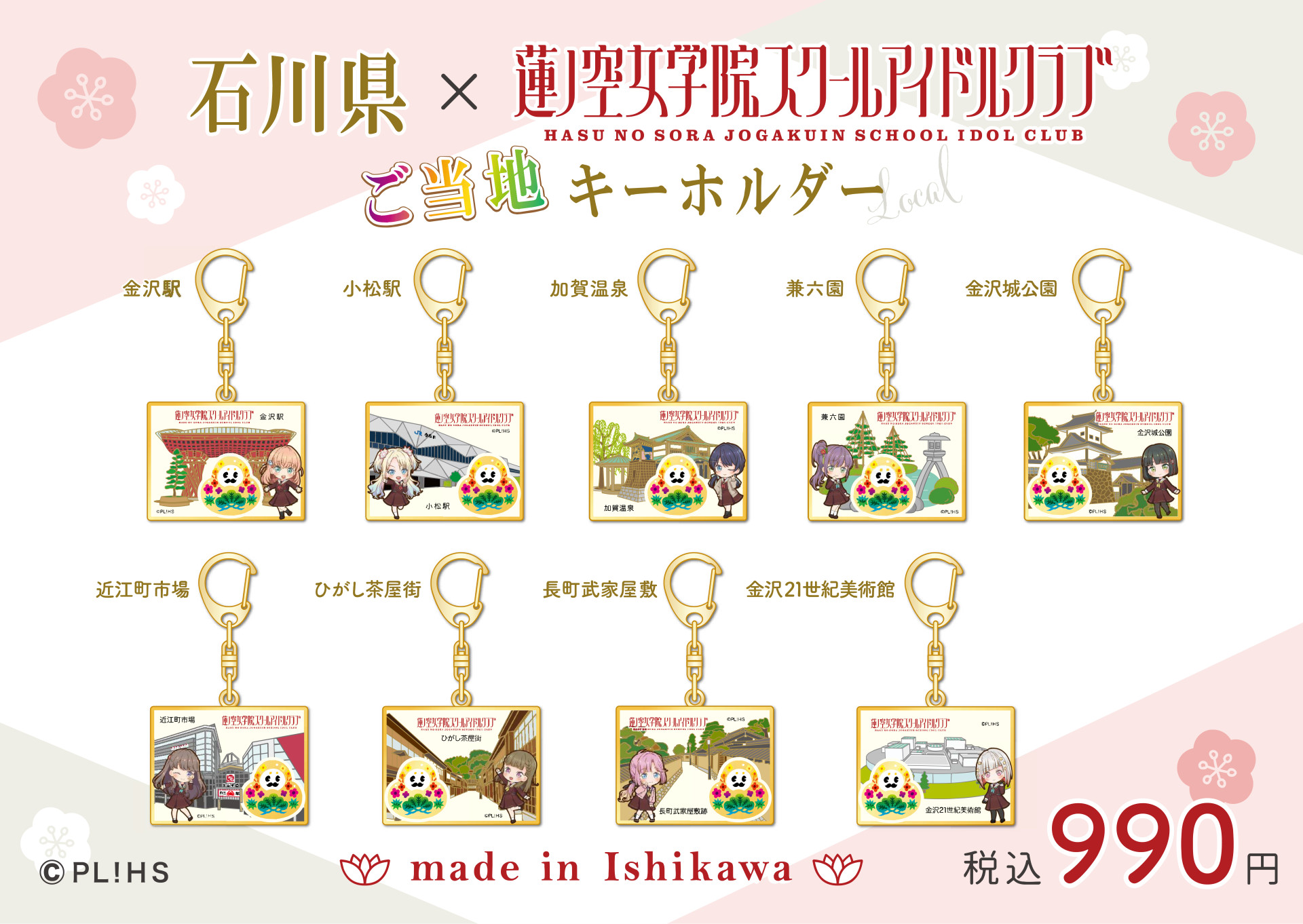 rakushopより発売中の「ひゃくまんさん×蓮ノ空女学院スクールアイドルクラブ 石川県ご当地キーホルダー」発売場所追加のお知らせ