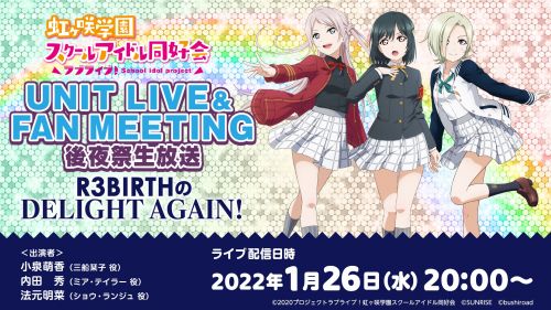 「ラブライブ!虹ヶ咲学園スクールアイドル同好会 UNIT LIVE & FAN MEETING後夜祭生放送 ~R3BIRTHのDELIGHT AGAIN~」のお知らせ